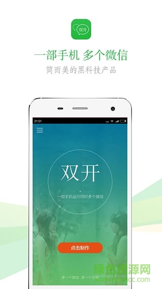 微信双开手机版(原微信多开助手)是一款非常好用的微信账号多开助手。这款软件能够实现微信多个不同账户的同时登录,并且接收消息互不影响哦。你可以设置工作、交友等多个账号信息。还可以实现其他软件分身登录哟!非常适合做微商的朋友营销使用!快来绿色资源网下载吧。