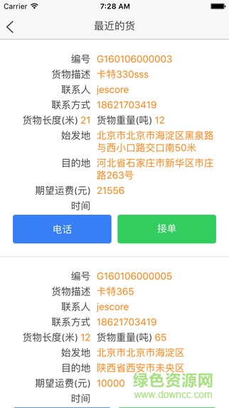 1.车主看到车辆周围的货物,直接联系货主。