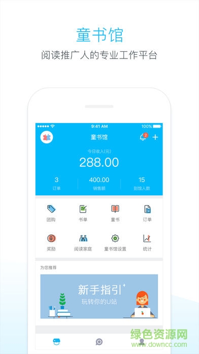孩宝u站app是一款不错的亲子阅读推广软件。用户可以使用本软件在线免费推广各类优秀的儿童读物,支持批量分享操作。可以实时查看电子书刊订单数据。需要的用户快来绿色资源网下载吧!