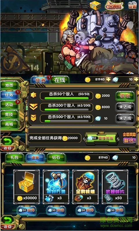 1.经典横版射击玩法,易操作更易上手