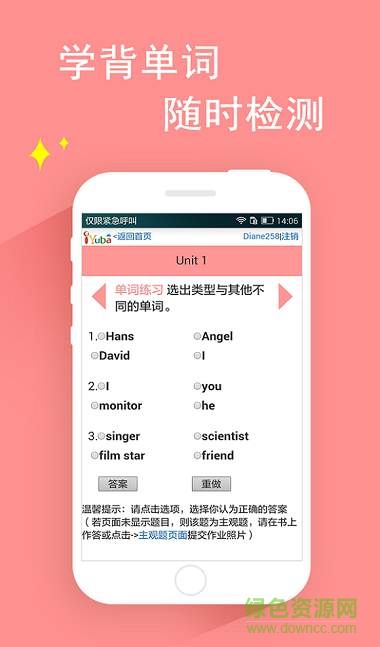 点开应用即可进入首页,点击单元序号可进入对应单元的课文及习题页面,习题分为单词、短对话、长对话任务及阅读任务,在对应任务页面中完成习题后,点击答案按钮,对照是否正确。也可点击重做重新答题。同学们可以通过点击各个Task左右的箭头进行习题间的切换。