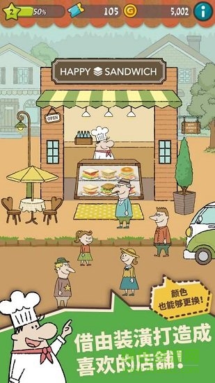 玩家可以在图画书般的世界中经营三明治店。选择喜欢的食材,制作独创的三明治吧!在享受故事的同时贩卖三明治,还能装潢自己的店铺,让生意蒸蒸日上!不断的制作各种美味可口的三明治,满足所有食客的要求让你赚取丰厚的金币奖励。