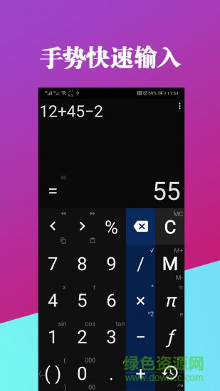 智能计算管家设计的手势快速输入,让你通过上滑、下滑按键实现快捷输入自定义符号,极大方便您万 能计算器。