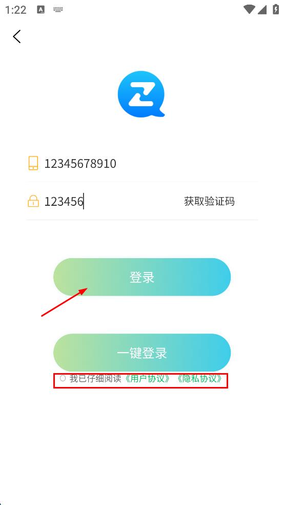 4、勾选我已仔细阅读用户协议隐私协议,点击登录按钮完成登录。