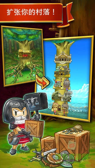 《神树小奇兵:罗宾之怒修改版》安卓免费游戏一款冒险、战斗、城镇建设完美融合在一起的全新概念角色扮演游戏!在本游戏中,你能够建造自己的书屋,扩充你的队伍,雇佣数位身怀绝技的英雄并用传奇武器武装他们,和逗比小伙伴一起去完成前所未有的大冒险吧!