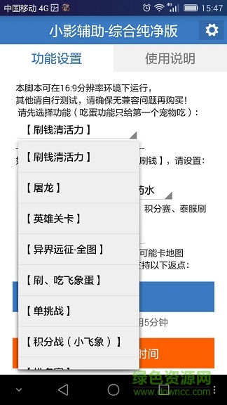 2.功能【英雄关卡】设置:第一行设置【英雄关卡】。游戏开到您能刷的地图去,或者正在刷也无所谓。但是脚本默认是从高级一直想低级地图刷。支持魔都、奇幻梦境、大漩涡、天域、烈焰、诅咒、环形英雄关,脚本不帮买药水,需要购买足够大药水。不兼容分辨率的手机可能出现不吃体力药水。包满不清理。