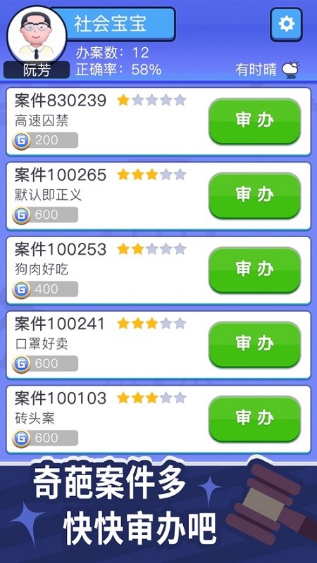 2、内容丰富,海量案件,故事情节有趣且富有挑战,操作简单,轻松学习法律知识。
