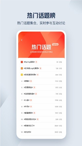 2、热门话题榜,热门话题集合,实时参与互动讨论,全面去获取;