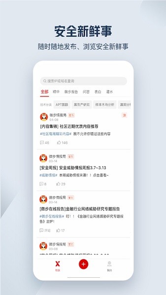 3、安全新鲜事,随时随地都可以去发布,浏览更多安全新鲜事宜。