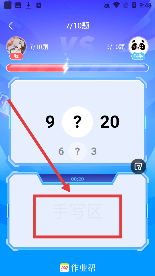 3、匹配到对手后,在答题界面的手写区进行答题,完成口算PK。