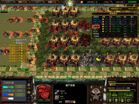 本图为两边对抗地图,建造建筑,30秒一回合,每回合获得收入,收入可通过提升兵力(建造建筑)、雇佣木头怪、强化法师来进行增加,木头可通过训练木灵来采集木头