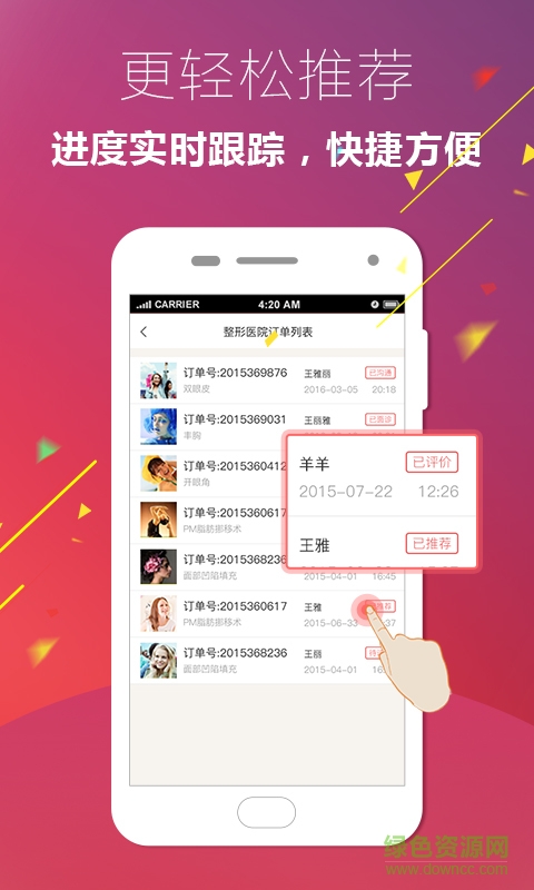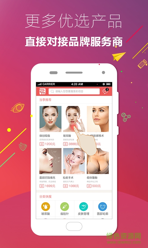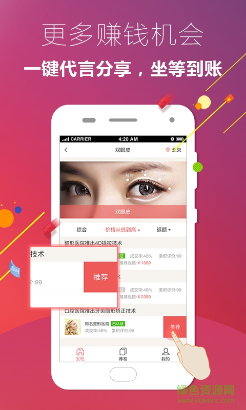 荐易app是一款医美资源共享和产品推荐平台,为你打造全方位整容塑型资讯、医疗资源推荐、美容院推荐等信息服务平台,为你提供安全而优质的整形服务。绿色资源网欢迎大家下载!