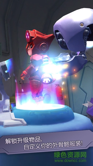 在战斗的同时,还可收集大量的金币、道具,可用来解锁、购买更强的装备,改造机甲性能,提高作战能力。