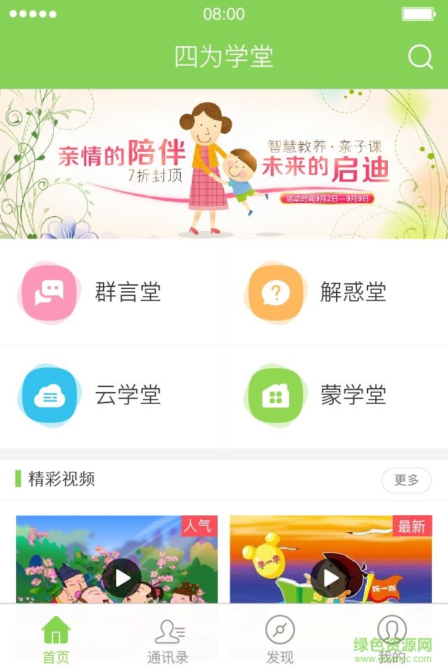 四为学堂app是一款专业的在线教育应用,用户可以在线想老师提问,专业的老师会为你解惑,还可以和其他的学员在此互相谈论发言,支持文字、语音、图片、视频、文件等多种沟通方式,而且还有丰富的教学视频供大家学习。有需要的朋友欢迎到绿色资源网下载!