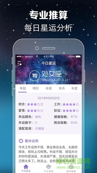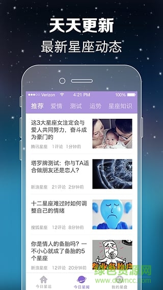 天天星座app是关于星座分析的手机资讯软件,是星座爱好者必备神器。天天星座app会告诉你关于星座的一切秘密,并且由知名女巫占卜每日星座运势,运程分析准到爆,喜欢星座的朋友欢迎来绿色资源网下载使用。