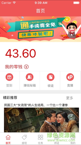 趣吧赚苹果版是一款非常实用的做任务赚钱手机软件,用户可以通过签到、玩游戏、下应用以及竞猜的方式来赚钱,收徒弟还能获得额外奖励哦,动动手指就能赚钱,你还在等什么,赶快到绿色资源网下载体验吧!