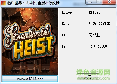 蒸汽世界大劫掠修改器是针对同名游戏开发的一款免费辅助软件,全版本都可以用,全中文界面,拥有修改金钱+10000和无限血的功能,能够帮助玩家更好的进行游戏通关,需要的用户快来绿色资源网下载吧!