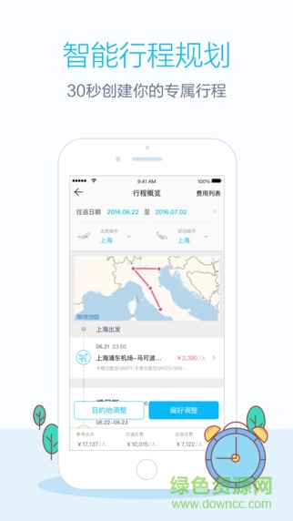 可以方便地复制他人的行程,APP会根据用户的需求,智能调整航班、酒店及景点的安排