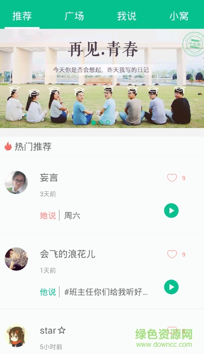 他说社区app,一款真实清晰的录音分享社交平台,在这里你可以随时留下自己的声音,说出自己的故事,更可以快捷分享到其他主流社交平台,评论点赞只需一键,喜欢的用户就快来下载吧!