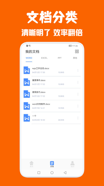 office办公全能王手机版是专业好用的手机办公软件,具备强大实用的功能,文档分类清晰明了,各种excel表格、ppt模板随你选择,根据个人需要自由使用,极简操作,处理办公更加高效,可谓是省心又省力,值得推荐!