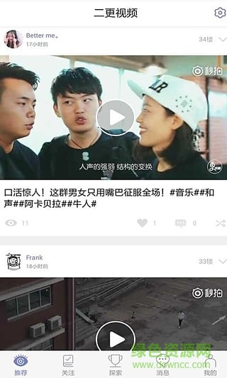 二更视频app是一款汇集了海量视频资源的软件,视频内容涉及人文艺术、潮流时尚、生活、美食等等各个领域,你可以在这里发现许多有内涵的视频,从而发现不一样的世界。有需要的朋友快来绿色资源网下载吧!