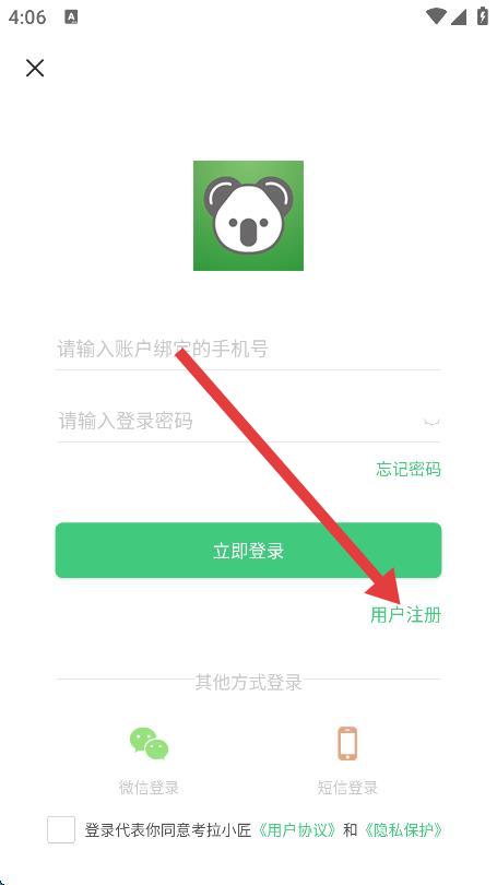 3、在登录页面,找到并点击用户注册选项,进入注册页面。