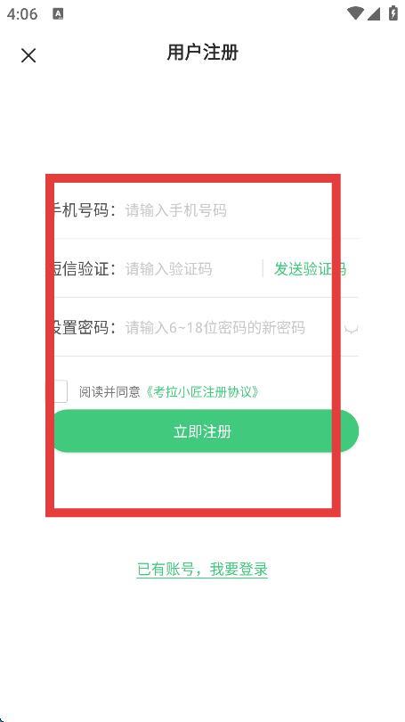 4、根据要求填写信息,点击立即注册即可完成登录。