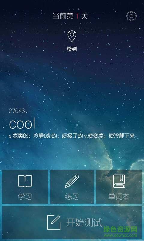 主页浏览单词模式,打开应用用户可以方便的对当前关卡的单词进行浏览式学习,每个单词都是按顺序轮播出现。