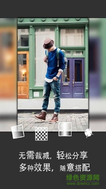 1.无需裁剪即可将全尺寸图片分享到社交平台。同时还可以添加多种适合图片的背景。