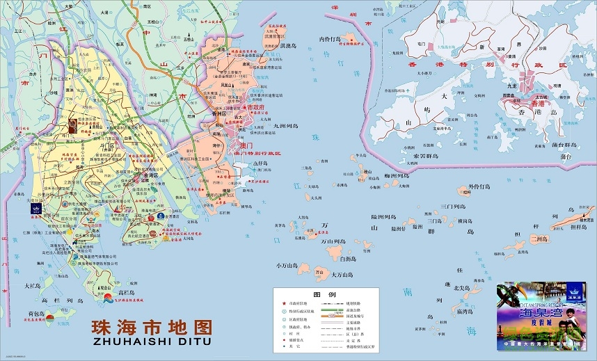 珠海,广东省省辖市,地处北纬21°48′——22°27′、东经113°03′——114°19′之间。位于广东省珠江口的西南部,东与香港隔海相望,南与澳门相连,西邻江门市新会区、台山市,北与中山市接壤。设有拱北、九洲港、珠海港、万山、横琴、斗门、湾仔、珠澳跨境工业区等8个国家一类口岸,是珠三角中海洋面积最大、岛屿最多、海岸线最长的城市,素有“百岛之市”之称。