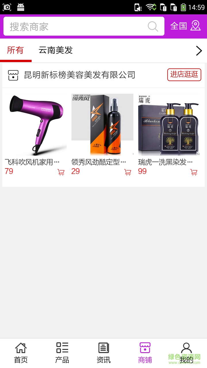云南美发app是一款专注于云南地区进行网络美发方面物品的购物app,通过云南美发app用户可以查询当地时尚用品,美发造型,实时资讯,进行购物消费,十分方便快捷。快来绿色资源网下载吧!