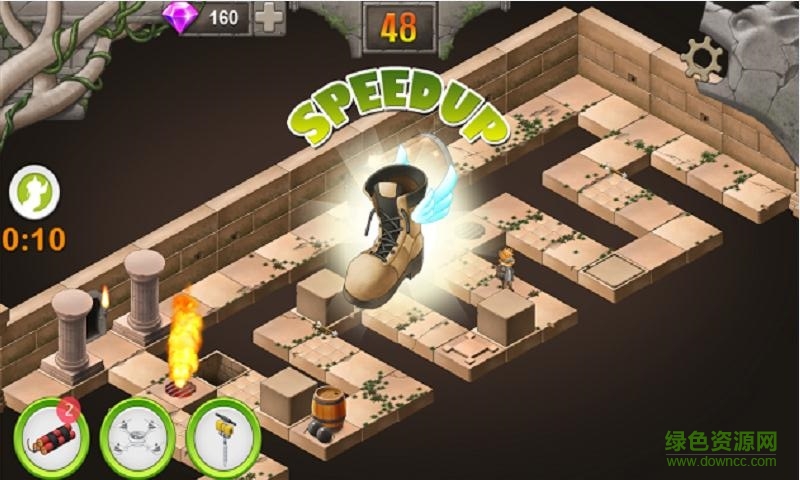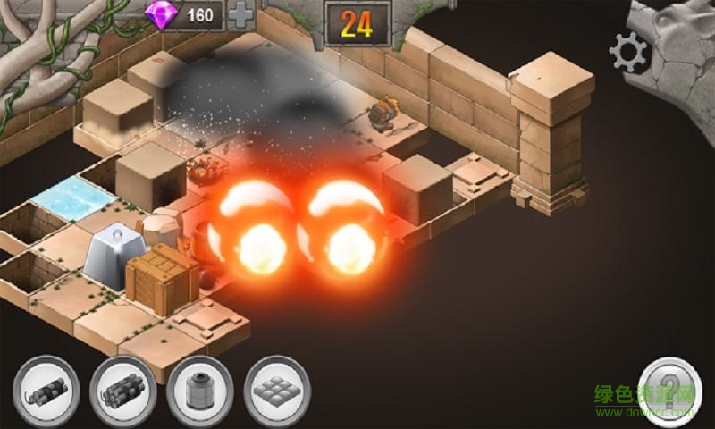 格子是所有策略制定前的考虑因素,炸弹的不同也会影响方格的前进距离,推动三格和推动一个,结果就是天差地别。虽然每一关的场景都不是很大,甚至让你觉得很拥挤,但也是格子,将前进的道路排布的井井有条。点触移动会让玩家更加舒服,如果我只能通过虚拟摇杆在这迷宫一样的场景中绕来绕去,那会很痛苦。后续的关卡中,地形会越来越复杂,也影响到炸弹的摆放,玩家需要有更跳跃的思维,才能和如此紧凑的场景斗智斗勇。