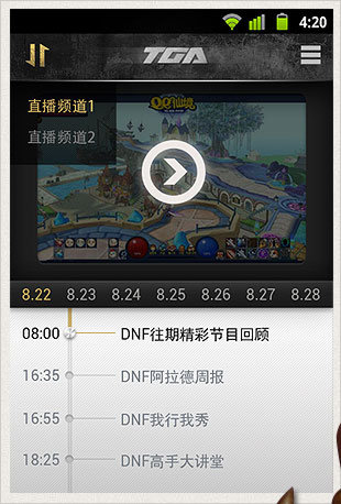 4.TGA(腾讯游戏竞技平台)是一款提供腾讯所有竞技游戏关于赛事直播、点播的平台