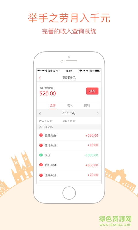 奖金管理:通过验券、信息发布、抢单等获得的奖金,可以自由提现至个人的银行或支付宝账户哟!