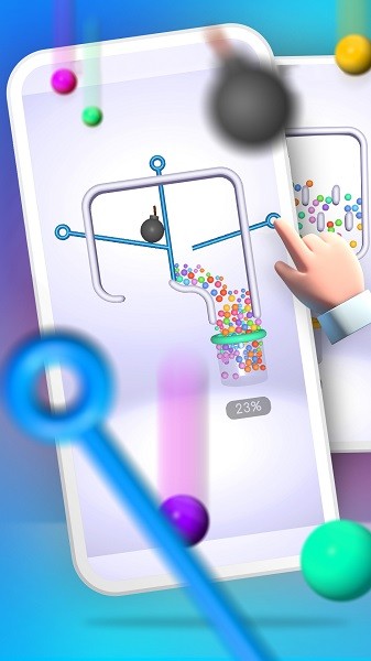 《脑力欢乐大挑战》是一款休闲益智烧脑游戏,需要用你的手指拉动栏杆引导小球进到瓶中,看似简单但十分具有挑战性,不通关卡具有不同玩法,挑战你的手速和脑力,尽可能的将它们都变成小彩球收入瓶中吧!