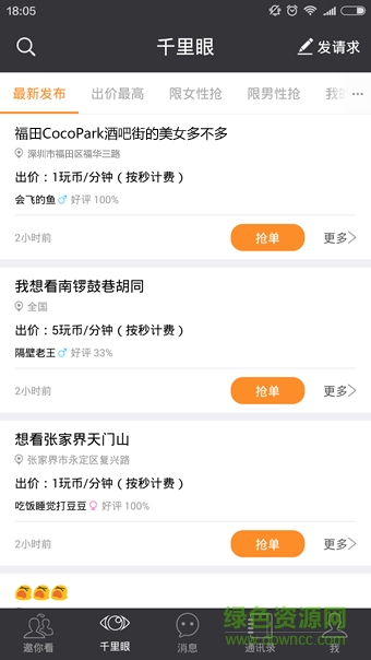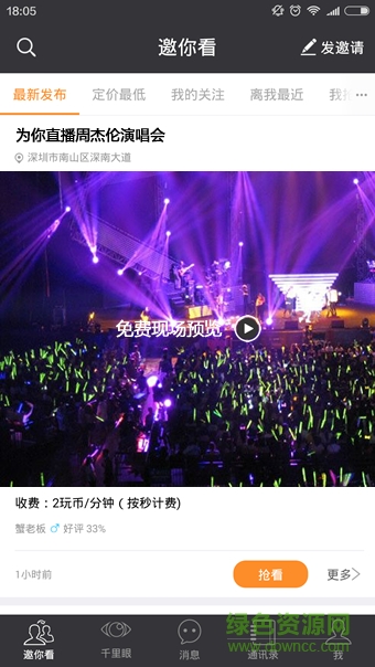 镜玩app是一款能够让你拥有“千里眼”超能力的神奇app,是一款提供一对一实时视频服务的手机软件,有了它你就可以不出门也能知晓天下事,还能看演唱会的直播,就是这么diao,就是这么强大,学生还能视频远程家教,学习就是这么轻松,感兴趣的朋友来绿色资源网下载体验。