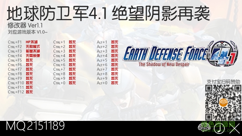 运行游戏,打开地球防卫军4.1绝望阴影再袭四项修改器,按相应的热键即可!