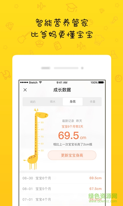 1.实时追踪宝宝成长状况并推送恰当的配方建议