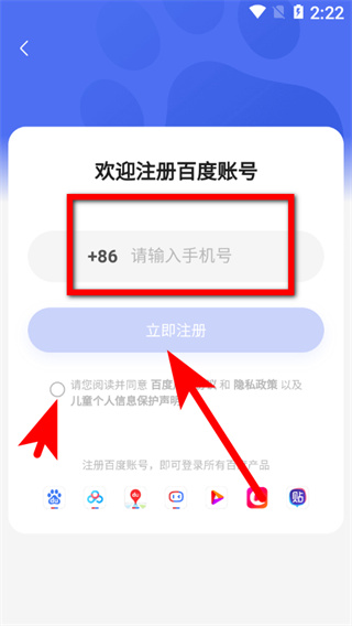 4、输入手机号,勾选用户协议后,点击立即注册按钮,完成账号注册。