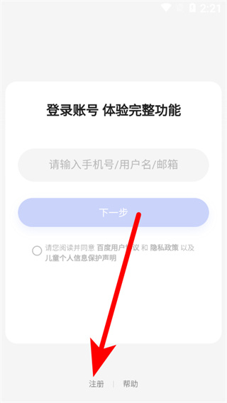 3、在登录账号页面,点击下方注册选项,进入百度账号注册页面。