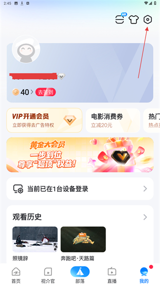 1、启动中国蓝tv,在首页导航栏中点击我的按钮。