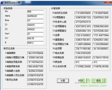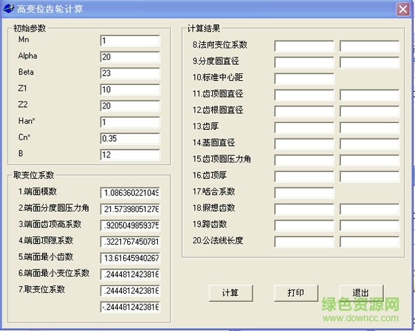 高变位齿轮计算软件提供了十三个与齿轮有关的参数计算