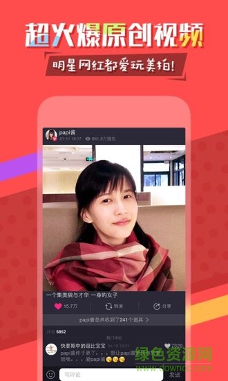 美拍电脑客户端是由美拍官网推出的一款段短视频录制播放软件,内含大量优质音乐、滤镜、动画特效,帮您轻松美美上镜简单视频也能变成电影大片,基于地理位置定位快速观看附近美拍视频,视频短片畅玩无限趣味。快来绿色资源网下载使用吧!
