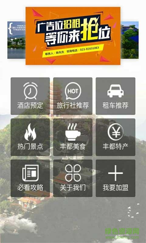 丰都旅游平台详细介绍了丰都各大景点,在这上面,你可以查询到丰都的游玩线路、交通地图、历史文化以及美食特产等!欢迎有需要的朋友在绿色资源网下载使用!