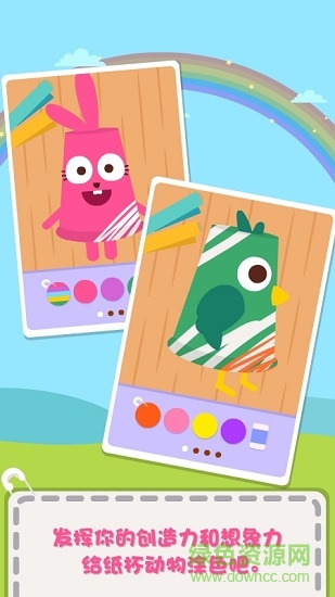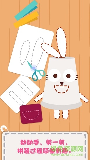 泡泡兔手工课是一款非常好玩的宝宝手工拼接小游戏,宝宝可以通过教学,准备好纸杯,剪刀,纸片,彩笔和胶水等工具来制作自己喜欢的动物形象,比如兔子,熊猫等,对宝宝的美术启蒙教育起到了一定的作用,还有宝宝的动手创造能力哦,喜欢的朋友就来绿色资源网下载安装吧