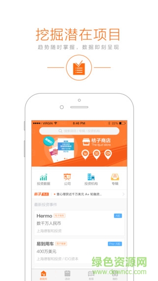 IT桔子苹果版是一款专注于国内互联网创业公司数据库的新闻资讯类应用,让用户在手机上快速了解业内各个创业公司的投资动态,还能发现一些新产品以及在线和创投人沟通交流。有需要的朋友快来绿色资源网下载吧!