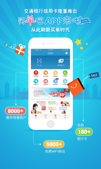 交通银行信用卡买单吧,是一个全民共享的“买单神器”。无论你是不是交通银行信用卡用户,都可以享受到买单吧带来的方便实惠。目前买单吧已支持180+银行卡,全国8000+餐饮特惠商户,5000+免费Wi-Fi,推荐办卡更可享受高额奖金。同时,交通银行信用卡买单吧是一个基于支付·生活·社交为一体的一站式平台,同时支持立码付、云闪付等支付方式,给用户以最便捷安全的支付体验。