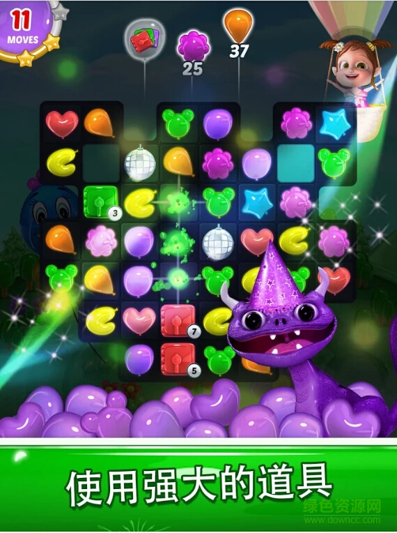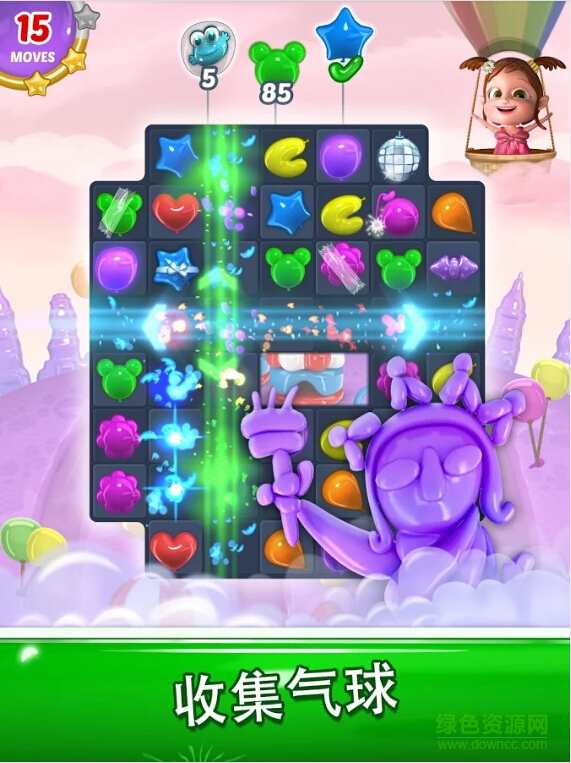 气球天堂游戏结合了众多三消游戏经典玩法,开创出自己独特的玩法,变得更加引人入胜,更加有趣,通过消除气球可消灭怪兽,获得道具,玩家将获得无穷的乐趣。快来绿色资源网下载吧!