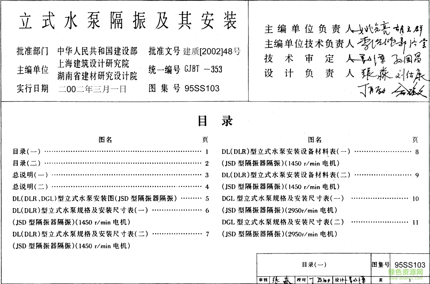 95ss103图集是一款水泵安装图集,小编主要为大家带来了DL型立式水泵安装图、DL型立式水泵规格及安装尺寸表、DL型立式水泵安装设备材料表等相关知识,欢迎有需要的朋友到绿色资源网下载使用!