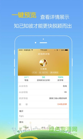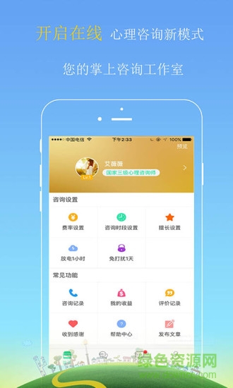 心理专家版是和心理咨询平台为心理咨询专家量身定制的移动客户端。方便心理咨询专家为患者提供在线答复、问诊服务。欢迎在绿色资源网下载使用。